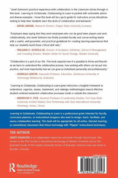 Students who know how to collaborate successfully in the classroom will be better prepared for professional success in a world where we are expected to work well with others. Students learn collaboratively, and acquire the skills needed to organize and complete collaborative work, when they participate in thoughtfully-designed learning activities.Learning to Collaborate, Collaborating to Learn uses the author's Taxonomy of Online Collaboration to illustrate levels of progressively more complex and integrated collaborative activities.- Part I introduces the Taxonomy of Online Collaboration and offers theoretical and research foundations.- Part II focuses on ways to use Taxonomy of Online Collaboration, including, clarifying roles and developing trust, communicating effectively, organizing project tasks and systems.- Part III offers ways to design collaborative learning activities, assignments or projects, and ways to fairly assess participants' performance.Learning to Collaborate, Collaborating to Learn is a professional guide intended for faculty, curriculum planners, or instructional designers who want to design, teach, facilitate, and assess collaborative learning. The book covers the use of information and communication technology tools by collaborative partners who may or may not be co-located. As such, the book will be appropriate for all-online, blended learning, or conventional classrooms that infuse technology with "flipped" instructional techniques.