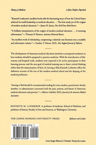 The development of American medical education involved a conceptual revolution in how medical students should be taught. With the introduction of laboratory and hospital work, students were expected to be active participants in their learning process, and the new goal of medical training was to foster critical thinking rather than the memorization of facts. In "Learning to Heal," Kenneth Ludmerer offers the definitive account of the rise of the modern medical school and the shaping of the medical profession.