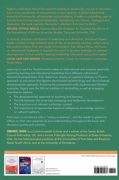 Learning to Lead for Transformation takes an international and inclusive approach, exploring learning and educational leadership from different cultural and theoretical perspectives, from Habermas' theory of cognitive interests to Freire's approach to education and Ngara's decolonized epistemology and Ubuntu-based developmental approach. Enriching his presentation with Japanese and Western examples, Ngara uses the African tradition of storytelling as well as engaging exercises to explore: - The developmental approach to teaching and learning - The link between the proposed pedagogy and…mehr