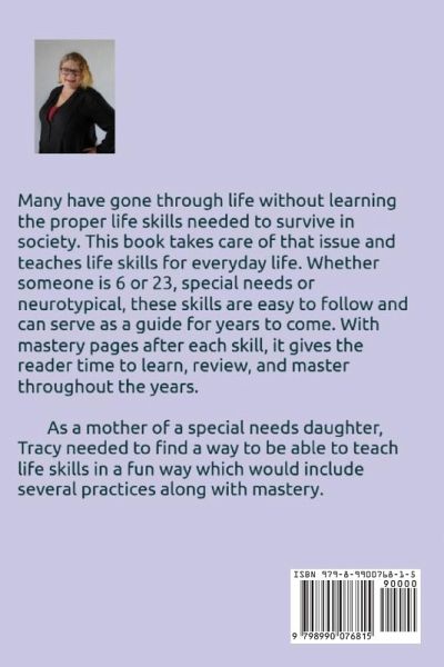 Many have gone through life without learning the proper life skills needed to survive in society. This book takes care of that issue and teaches life skills for everyday life. Whether someone is 6 or 23, special needs or neurotypical, these skills are easy to follow and can serve as a guide for years to come. With mastery pages after each skill, it gives the reader time to learn, review, and master throughout the years.