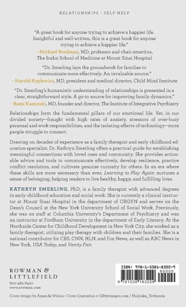 "Smerling's system for creating or restoring healthy relationships should appeal to readers interested in childhood development and connecting with their younger selves." -Library Journal Relationships form the fundamental pillars of our emotional life. Yet, as US Surgeon General Vivek Murthy has declared, we are facing an epidemic of loneliness and isolation that is harming human health and well-being. In our divided society, fraught with high rates of anxiety, the stressors of over-busy personal and work responsibilities, the isolating effects of technology, and more people are struggling to connect. Kindness and empathy are in short supply, and relationships face unprecedented challenges. Yet happy and healthy relationships are more necessary now than ever to help people have a sense of belonging and to live healthy, happy, and fulfilling lives. Drawing on her decades of work as a family therapist and early childhood education specialist, Dr. Kathryn Smerling's Learning to Play Again offers a blueprint for establishing meaningful connection first at home with loved ones, and then with extended family, friends, and colleagues. From reminding ourselves about the value of "Please" and "Thank you" to learning the joy of parallel play, to building a support system through kindness and empathic communication skills, Dr. Smerling's new book invites readers to focus on personal attunement and how things like individual self-esteem can lead to greater resilience and success in relationships.