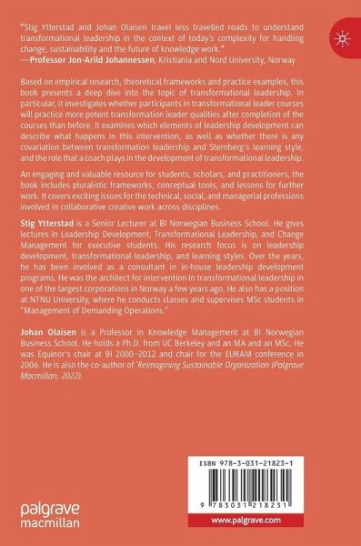 Based on empirical research, theoretical frameworks and practice examples, this book presents a deep dive into the topic of transformational leadership. In particular, it investigates whether participants in transformational leader courses will practice more potent transformation leader qualities after completion of the courses than before. It examines which elements of leadership development can describe what happens in this intervention, as well as whether there is any covariation between transformation leadership and Sternberg's learning style, and the role that a coach plays in the development of transformational leadership.