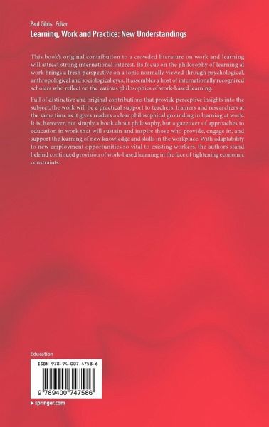 This book's original contribution to a crowded literature on work and learning will attract strong international interest. Its focus on the philosophy of learning at work brings a fresh perspective on a topic normally viewed through psychological, anthropological and sociological eyes. It assembles a host of internationally recognized scholars who reflect on the various philosophies of work-based learning.Full of distinctive and original contributions that provide perceptive insights into the subject, the work will be a practical support to teachers, trainers and researchers at the same time as it gives readers a clear philosophical grounding in learning at work. It is, however, not simply a book about philosophy, but a gazetteer of approaches to education in work that will sustain and inspire those who provide, engage in, and support the learning of new knowledge and skills in the workplace. With adaptability to new employment opportunities so vital to existing workers, the authors stand behind continued provision of work-based learning in the face of tightening economic constraints.