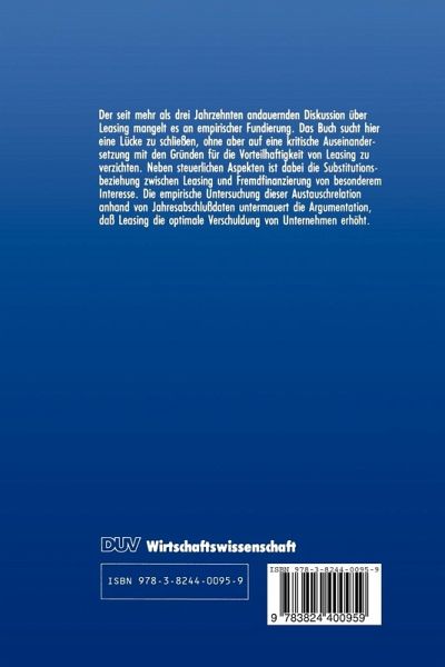 Der seit mehr als drei Jahrzehnten andauernden wissenschaftlichen Diskus sion uber die erfolgreiche Finanzinnovation Leasing mangelt es an empirischer Fundierung. Schweitzer sucht hier eine Lucke zu schlieBen, ohne aber auf eine kritische Auseinandersetzung mit den Grunden fUr die Vorteilhaftigkeit von Leasing zu verzichten. Die Annahmen, das gewiihlte wissenschaftliche Instrumentarium und die ein geschlagene Vorgehensweise ordnen die Arbeit dem betriebswirtschaftlichen Gebiet Finanzierung zu. Insbesondere wird von allen steuerlichen Feinhei ten abstrahiert und nur eine einfache Korperschaftsteuer US-amerikanischer Priigung analysiert. 1m Rahmen der theoretischen Analyse geht der Verfasser ausfUhrlich auf die Bewertung von Zahlungsstromen und auf die Integration der Leasingbe wertung in das Investitionskalkiil ein, zwei in der Leasingdiskussion hiiufig vernachliissigte Fragen. Ausgangspunkt der Analyse moglicher Vorteile von Leasing bildet die auf Myers/Dill/Bautista zuruckgehende Erkenntnis, daB Leasinggeber und Leasingnehmer unter den gegebenen Annahmen ihren Ent scheidungen Gleichungen zugrunde legen, die sich spiegelbildlich entsprechen und deren Summe null ergibt. Schweitzer diskutiert ausfUhrlich die Vorteile unterschiedlicher Steuersiitze bei Leasinggeber und Leasingnehmer, wie auch die Frage, ob Leasing den Kreditspielraum der Unternehmung erweitert.