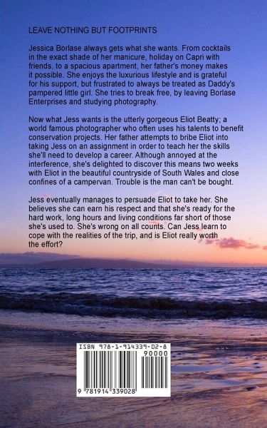 Jessica Borlase always gets what she wants. From cocktails in the exact shade of her manicure, holiday on Capri with friends, to a spacious apartment, her father's money makes it possible. She enjoys the luxurious lifestyle and is grateful for his support, but frustrated to always be treated as Daddy's pampered little girl. She tries to break free, by leaving Borlase Enterprises and studying photography. Now what Jess wants is the utterly gorgeous Eliot Beatty; a world famous photographer who often uses his talents to benefit conservation projects. Her father attempts to bribe Eliot into taking Jess on an assignment in order to teach her the skills she'll need to develop a career. Although annoyed at the interference, she's delighted to discover this means two weeks with Eliot in the beautiful countryside of South Wales and close confines of a campervan. Trouble is, the man can't be bought. Jess eventually manages to persuade Eliot to take her. She believes she can earn his respect and that she's ready for the hard work, long hours and living conditions far short of those she's used to. She's wrong on all counts. Can Jess learn to cope with the realities of the trip, and is Eliot really worth the effort?