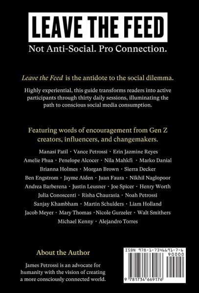 In a world where the impact of social media on mental health is alarmingly clear, Leave the Feed: Disconnect to Reconnect steps in as the antidote to the social dilemma, signaling a departure from incessant scrolling and a return to the essence of genuine living. Let's be real - unhealthy scrolling habits are so last season! No more just talking about the problem; introducing a 30-day transformative journey to reclaim your life from the digital noise. Zombie mode? Nah, it's time to become the hero of your own story. Leave the Feed is like your trusty sidekick on the epic quest to free yourself from the social media chaos! Far beyond a regular read, it's an interactive roadmap for disconnecting and reconnecting to what truly matters. Imagine this: instead of waking up and instinctively grabbing your phone, it's time to crack open Leave the Feed. A morning notification illuminates the mind, and daily missions turn knowledge into practice. It's like a friendly nudge, whispering, "Hey, let's make today awesome!" And at night? No more aimless scrolling before bed. Instead, it's time to jot down thoughts, reflect on the day, and soak in words of wisdom from one of our Gen Z changemakers, fostering a sense of community and shared purpose. Once complete, you won't simply be closing a book; you'll be leveling up, armed with a personal plan to kick social media FOMO to the curb. Want in? Featuring words of encouragement from Gen Z creators, influencers, and changemakers including: Manasi Patil - Vance Petrossi - Erin Jazmine Reyes - Amelie Phua - Penelope Alcocer - Nila Mahkfi - Marko Danial - Brianna Holmes - Morgan Brown - Sierra Decker - Ben Engstrom - Jayme Aiden - Juan Faura - Nikhil Naglopoor - Andrea Barberena - Justin Leusner - Joe Spicer - Henry Worth - Julia Conoscenti - Risha Chaurasia - Noah Petrossi - Sanjay Khambham - Martin Schulders - Liam Holland - Jacob Meyer - Mary Thomas - Nicole Gurzeler - Walt Smithers - Michael Kenny - Alejandro Torres Outward by Dylan Huey, Master Creator and CEO of Reach, the first and only collegiate organization for influencers and social media personalities. What's stopping you? Leave the Feed is your go-to guide for helping to break free from the destructive grip of social media and learn to use it as a tool, not a reality.