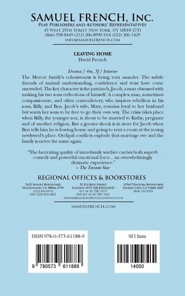 Drama Characters: 4 male, 3 female Interior Set An exceptional drama by an award winning Canadian playwright.The Mercer family's cohesiveness is being torn asunder. The subtle threads of mutual understanding, confidence and trust have come unraveled. The key character is the patriarch, Jacob, a man obsessed with making his two sons reflections of himself. A complex man, sometimes compassionate, and often contradictory, who inspires rebellion in his sons, Billy, and Ben.