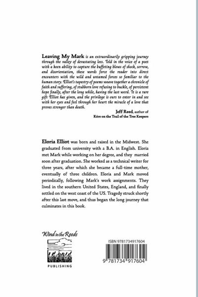 Leaving My Mark is an extraordinary memoir written by Eloria Elliot of her journey through grief and healing. Composed as a sequence of lyric poems, and graced with beautiful original artwork, Elliot gives us a unique front-row seat to the trauma of losing her husband through a tragic instance of medical negligence and the long torturous road of the sorrow and anger that followed. Written over a period of 17 years, her honest and vulnerable poems lead us all the way from unimaginable shock and despair, through the twists and turns of seeking truth, justice and closure, to new places of hope and healing. This book offers rare resources of insight and solidarity for all who find themselves traveling the way of loss and sorrow or for those walking alongside anyone suffering in the valleys of grief.