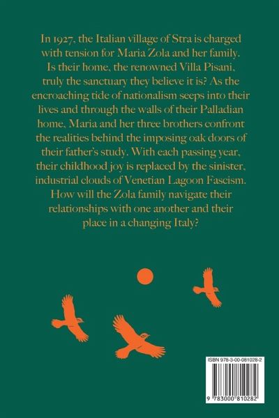 In 1927, the Italian village of Stra is charged with tension for Maria Zola and her family. Is their home, the renowned Villa Pisani, truly the sanctuary they believe it is? As the encroaching tide of nationalism seeps into their lives and through the walls of their Palladian home, Maria and her three brothers confront the realities behind the imposing oak doors of their father's study. With each passing year, their childhood joy is replaced by the sinister, industrial clouds of Venetian Lagoon Fascism. How will the Zola family navigate their relationships with one another and their place in a changing Italy?