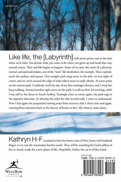 Like life, the [Labyrinth] walk seems pretty easy at the start when we're kids. You decide what you want to be when you grow up and head that way, toward center. Then real life begins to happen. Some of us carry the seeds of a physical, mental, and spiritual malaise, one of the "isms" like alcoholism, for example. These explode, reach the surface, and sprout. Our straight path zings away to the side, we lose sight of center, and we circle around the edge of what others seem to easily obtain. At some point on the narrow path, I suddenly recall the day of my first marriage's divorce, and I weep but keep walking. Around another tight curve on the path, I recall my first AA meeting, while I was still in the detox in South Amboy. Teasingly close to center again, the path zags in the opposite direction. In obeying the order for this second walk, I come to understand. Now I feel again the purposeful turning away from recovery that I chose time and again, running from salvation back to the slavery of bottle or line. My choices, mine alone.