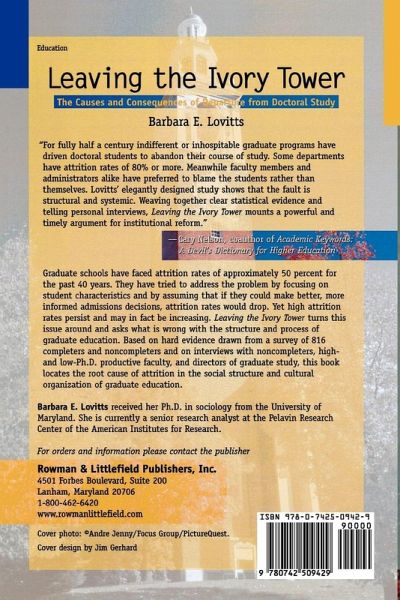 Graduate schools have faced attrition rates of approximately 50 percent for the past 40 years. They have tried to address the problem by focusing on student characteristics and by assuming that if they could make better, more informed admissions decisions, attrition rates would drop. Yet high attrition rates persist and may in fact be increasing. Leaving the Ivory Tower thus turns the issue around and asks what is wrong with the structure and process of graduate education. Based on hard evidence drawn from a survey of 816 completers and noncompleters and on interviews with noncompleters, high- and low-Ph.D productive faculty, and directors of graduate study, this book locates the root cause of attrition in the social structure and cultural organization of graduate education.