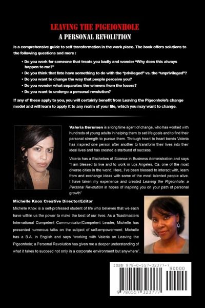 Leaving the Pigeonhole; a Personal Revolution is a comprehensive guide to self transformation in the work place. The book offers an innovative approach to the questions that consume many white collar workers such as: ¿ Why do I always end up working for someone that treats me badly? ¿ How can I change the way that people perceive me? ¿ What separates the winners from the losers? ¿ How can I under a personal revolution? If any of these apply to you, you will certainly benefit from Leaving the Pigeonhole's change model and will learn to apply it to any realm of your life, which you may want to change.