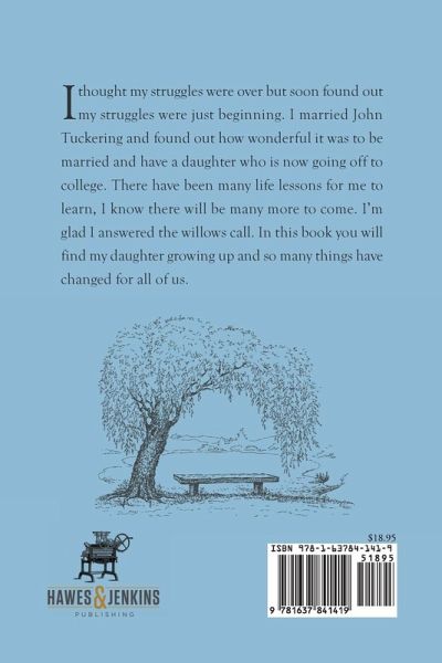 I thought my struggles were over but soon found out my struggles were just beginning. I married John Tuckering and found out how wonderful it was to be married and have a daughter who is now going off to college. There have been many life lessons for me to learn, I know there will be many more to come. I'm glad I answered the willows call. In this book you will find my daughter growing up and so many things have changed for all of us.