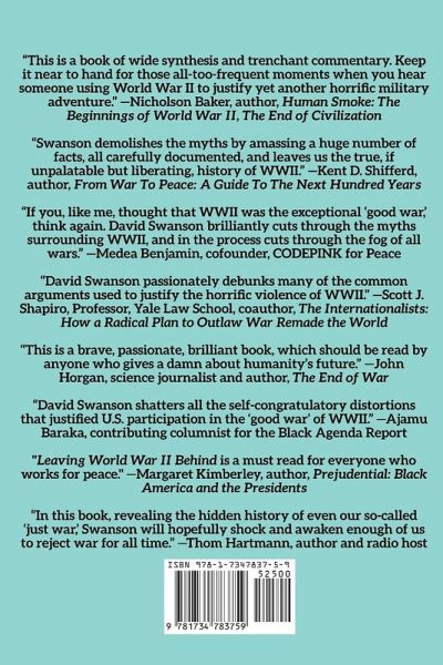 This book documents the case that World War II happened in such a different world that it has little relevance to today's foreign policy, as well as the case that U.S. participation in WWII was not justifiable. Specifically, WWII was not fought to rescue anyone from persecution, was not necessary for defense, was the most damaging and destructive event yet to occur, and would not have happened had any one of these factors been missing: World War I, the manner in which WWI was ended, U.S. funding and arming of Nazis, a U.S. arms race with Japan, U.S. development of racial segregation, U.S. development of eugenics, U.S. development of genocide and ethnic cleansing, or the U.S. and British prioritization of opposing the Soviet Union at all costs. The author corrects numerous misconceptions about the most popular and misunderstood war in western culture, in order to build a case for moving to a world beyond war.