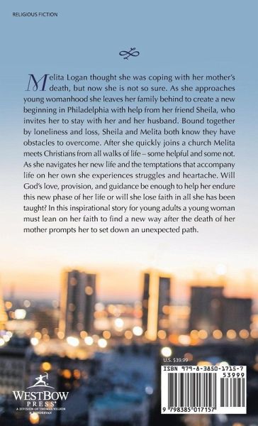 Melita Logan thought she was coping with her mother's death, but now she is not so sure. As she approaches young womanhood she leaves her family behind to create a new beginning in Philadelphia with help from her friend Sheila, who invites her to stay with her and her husband. Bound together by loneliness and loss, Sheila and Melita both know they have obstacles to overcome. After she quickly joins a church Melita meets Christians from all walks of life - some helpful and some not. As she navigates her new life and the temptations that accompany life on her own she experiences struggles and heartache. Will God's love, provision, and guidance be enough to help her endure this new phase of her life or will she lose faith in all she has been taught? In this inspirational story for young adults a young woman must lean on her faith to find a new way after the death of her mother prompts her to set down an unexpected path.
