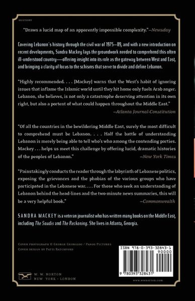 Covering Lebanon's history through the Civil War of 1975-89, Sandra Mackey lays the groundwork needed to comprehend this often ill-understood country-offering insight into its role as the gateway between West and East, and bringing a clarity of focus to the schisms that serve to divide and define Lebanon.