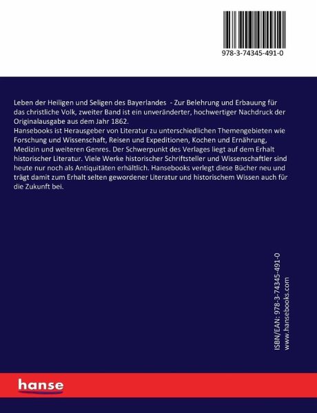 Leben der Heiligen und Seligen des Bayerlandes - Zur Belehrung und Erbauung für das christliche Volk, zweiter Band ist ein unveränderter, hochwertiger Nachdruck der Originalausgabe aus dem Jahr 1862.