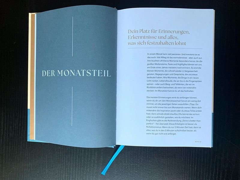 Ich bin gleichzeitig begeistert und herausgefordert von dem Buch. Es ist sehr ausführlich und meiner Meinung nach nichts für absolute Reflexions-Neulinge. Aber wenn man sich gerne bewusst Zeit nimmt zum Reflektieren, dann ist es ein großer Schatz. Ein Leitfaden durch das Jahr, das so hoffentlich bewusster gelebt, überdacht, gestaltet wird. Ich kann mir gut vorstellen, dass es für viele zum Segen wird.