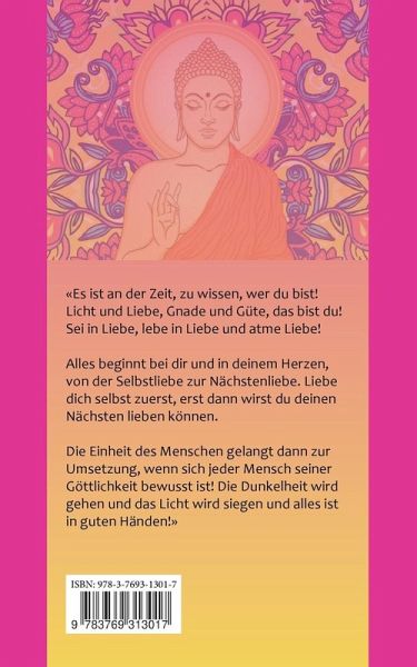 «Es ist an der Zeit zu wissen, wer du bist! Licht und Liebe, Gnade und Güte, das bist du! Sei in Liebe, lebe in Liebe und atme Liebe! Alles beginnt bei dir und in deinem Herzen, von der Selbstliebe zur Nächstenliebe. Liebe dich selbst zuerst, erst dann wirst du deinen Nächsten lieben können. Die Einheit des Menschen gelangt dann zur Umsetzung, wenn sich jeder Mensch seiner Göttlichkeit bewusst ist! Die Dunkelheit wird gehen und das Licht wird siegen und alles ist in guten Händen!»