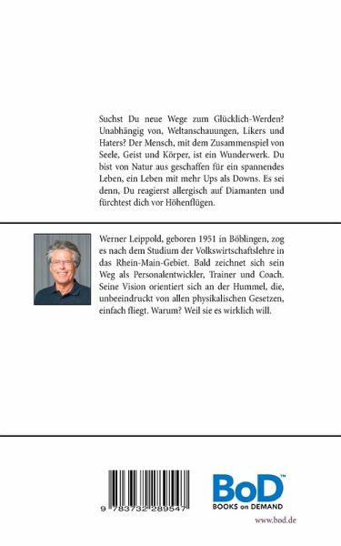 Das Leben läuft weiter. Suchst Du neue Wege zum Glücklich-Werden? Unabhängig von Mode-Trends, Weltanschauungen, Likers und Haters? Der Mensch, mit dem Zusammenspiel von Seele, Geist und Körper, ist ein Wunderwerk. Du bist von Natur aus geschaffen für ein spannendes Leben, ein Leben mit mehr Ups als Downs. Es sei denn, Du reagierst allergisch auf Diamanten und fürchtest dich vor Höhenflügen.