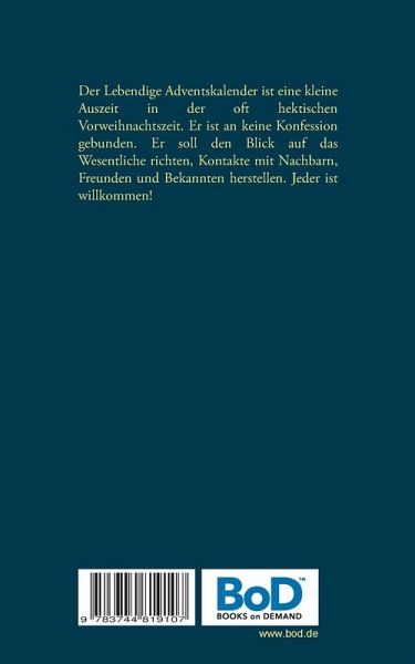 Der Lebendige Adventskalender ist eine kleine Auszeit in der oft hektischen Vorweihnachtszeit. Er ist an keine Konfession gebunden. Er soll den Blick auf das Wesentliche richten, Kontakte mit Nachbarn, Freunden und Bekannten herstellen. Jeder ist willkommen!