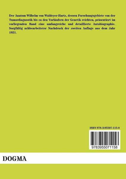 Der Anatom Wilhelm von Waldeyer-Hartz, dessen Forschungsgebiete von der Tumordiagnostik bis zu den Vorläufern der Genetik reichten, präsentiert im vorliegenden Band eine umfangreiche und detaillierte Autobiographie. Sorgfältig nchbearbeiteter Nachdruck der zweiten Auflage aus dem Jahr 1921.