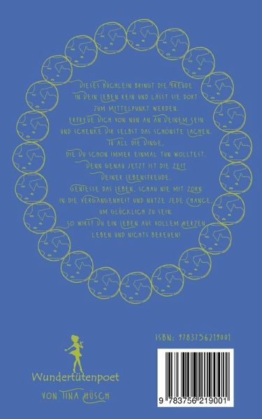 Dieses Büchlein bringt die Freude in Dein Leben rein und lässt sie dort zum Mittelpunkt werden.Erfreue Dich von nun an an Deinem Sein und schenke Dir selbst das schönste Lachen.Tu all die Dinge, die Du schon immer einmal tun wolltest. Denn genau jetzt ist die Zeit Deiner Lebensfreude.Genieße das Leben, schau nie mit Zorn in die Vergangenheit und nutze jede Chance, um glücklich zu sein. So wirst Du ein Leben aus vollem Herzen leben und nichts bereuen!