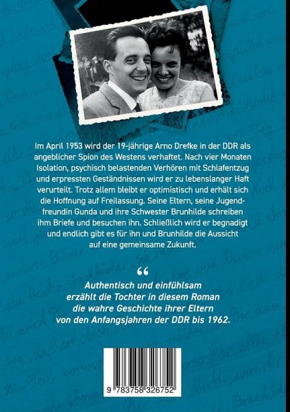Im April 1953 wird der 19-jährige Arno Drefke in der DDR als angeblicher Spion des Westens verhaftet. Nach vier Monaten Isolation, psychisch belastenden Verhören mit Schlafentzug und erpressten Geständnissen wird er zu lebenslanger Haft verurteilt. Trotz allem bleibt er optimistisch und erhält sich die Hoffnung auf Freilassung. Seine Eltern, seine Jugendfreundin Gunda und ihre Schwester Brunhilde schreiben ihm Briefe und besuchen ihn. Schließlich wird er begnadigt und endlich gibt es für ihn und Brunhilde die Aussicht auf eine gemeinsame Zukunft.Authentisch und einfühlsam erzählt die Tochter in diesem Roman die wahre Geschichte ihrer Eltern von den Anfangsjahren der DDR bis 1962.