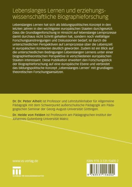 0.- Einführung: Was hat lebenslanges Lernen mit Biographieforschung zu tun?.- Das Rahmenthema: Lebenslanges Lernen als europäisches Projekt.- Lifelong Learning and Cultural Change: A European Perspective1.- Neue Forschungsansätze zum lebenslangen Lernen.- Only Connect: The Auto/biographical, Psychosocial Imagination in Researching Lives.- Gender, Biographies and Lifelong Learning: Researching Women in Higher Education.- "Diskurspolitik": Lebenslanges Lernen als postmodernes Machtspiel?.- Lebenslanges Lernen als Regierungsprogramm: Der deutsche bildungspolitische Diskurs in gouvernementalitätstheoretischer Perspektive.- Lebenslanges Lernen und Kompetenz: Chancen und Risiken der Verknüpfung zweier Diskursstränge.- Erzähl-Strukturen: Rekonstruktion von Alltagswelten oder Beobachtung der Kontingenzreduktion?.- Überraschende empirische Ergebnisse zum lebenslangen Lernen.- Überlegungen zum theoretischen Konzept des lebenslangen Lernens und zur empirischen Rekonstruktion selbstbestimmten Lernens.- Musicians as Lifelong Learners.- Auf der Suche nach dem reflexiven, autonomen Lerner: Leitfigur für die Bewältigung einer "komplexen Welt im Umbruch"1.- Hochschulen als Orte lebenslangen Lernens in Europa? Anrechnung von außerhalb der Hochschulen erworbenen Kompetenzen auf Hochschulstudiengänge.- Weiterbildung und die Entstehung neuen kulturellen Kapitals bei hochqualifizierten Migranten und Migrantinnen.