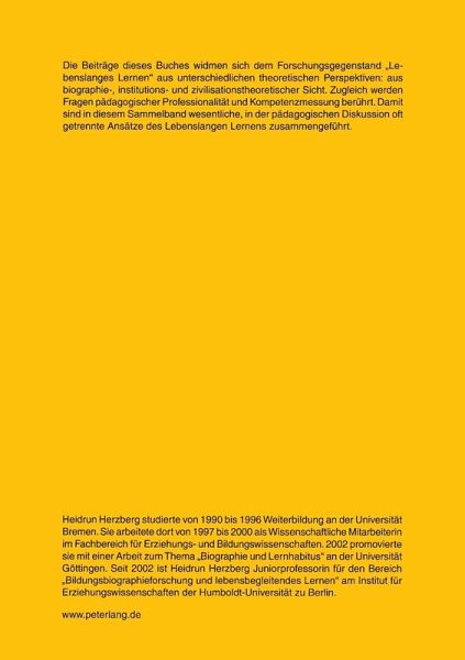 Die Herausgeberin: Heidrun Herzberg studierte von 1990 bis 1996 Weiterbildung an der Universität Bremen. Sie arbeitete dort von 1997 bis 2000 als Wissenschaftliche Mitarbeiterin im Fachbereich für Erziehungs- und Bildungswissenschaften. 2002 promovierte sie mit einer Arbeit zum Thema «Biographie und Lernhabitus» an der Universität Göttingen. Seit 2002 ist Heidrun Herzberg Juniorprofessorin für den Bereich «Bildungsbiographieforschung und lebensbegleitendes Lernen» am Institut für Erziehungswissenschaften der Humboldt-Universität zu Berlin.
