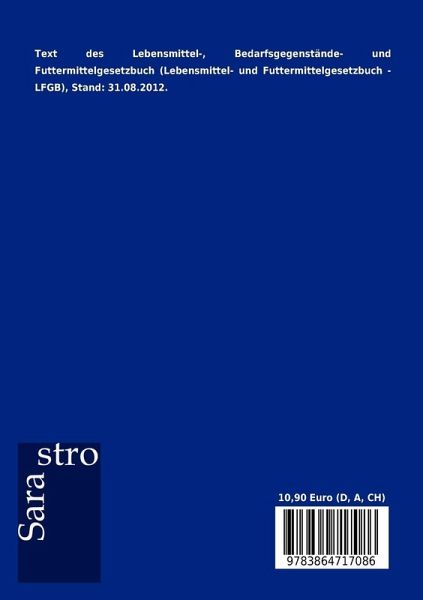 Text des Lebensmittel-, Bedarfsgegenstände- und Futtermittelgesetzbuch (Lebensmittel- und Futtermittelgesetzbuch - LFGB), Stand: 31.08.2012.