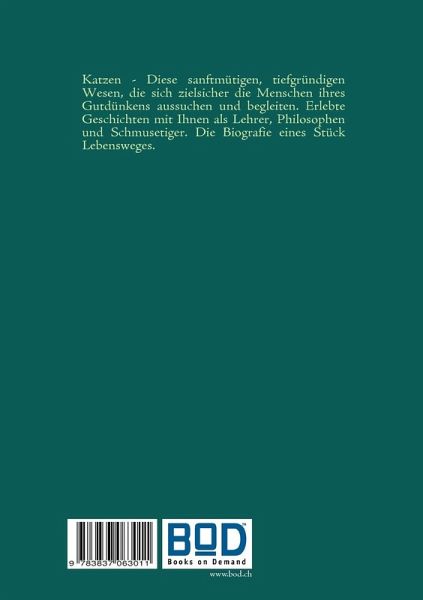 Katzen - Diese sanftmütigen, tiefgründigen Wesen, die sich zielsicher die Menschen ihres Gutdünkens aussuchen und begleiten. Erlebte Geschichten mit Ihnen als Lehrer, Philosophen und Schmusetiger. Die Biografie eines Stück Lebensweges.