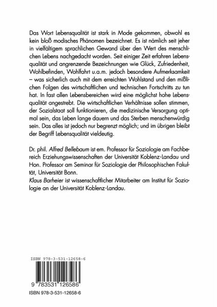 Das Wort Lebensqualität ist stark in Mode gekommen, obwohl es kein bloß modisches Phänomen bezeichnet. Es ist nämlich seit jeher in vielfältigem sprachlichen Gewand über den Wert des menschlichen Lebens nachgedacht worden. Seit einiger Zeit erfahren Lebensqualität und angrenzende Bezeichnungen wie Glück, Zufriedenheit, Wohlbefinden, Wohlfahrt u.a.m. jedoch besondere Aufmerksamkeit - was sicherlich auch mit dem erreichten Wohlstand und den mißlichen Folgen des wirtschaftlichen und technischen Fortschritts zu tun hat.In fast allen Lebensbereichen wird eine möglichst hohe Lebensqualität angestrebt. Die wirtschaftlichen Verhältnisse sollen stimmen, der Sozialstaat funktionieren, die medizinische Versorgung optimal sein, das Leben lange dauern und das Sterben menschenwürdig sein. Das alles ist jedoch nur begrenzt möglich, und im übrigen bleibt der Begriff Lebensqualität sehr vieldeutig.