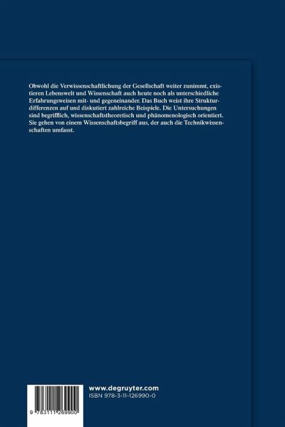 Das Verhältnis von Lebenswelt und Wissenschaft befindet sich mit ungewissem Ausgang in stetiger Bewegung. In diesem Prozess ist das treibende Element die Wissenschaft, die Technisierungen ermöglicht und mit ihren Erkenntnissen die Welt überzieht. Trotz der fortschreitenden Verwissenschaftlichung hat sich die Lebenswelt jedoch ihre Eigenständigkeit bewahrt. Die vorliegenden Studien tragen zur Aufklärung dieses erstaunlichen Phänomens bei. Sie weisen Strukturdifferenzen der beiden Erfahrungsweisen auf und zeigen, wie sie mit- und gegeneinander existieren. Zugleich wird deutlich, dass ein Ende der lebensweltlichen Eigenständigkeit einen fundamentalen Wandel für die gesellschaftliche Stellung nichtwissenschaftlicher Erfahrung bedeuten würde. Die Untersuchungen sind begrifflich, wissenschaftstheoretisch und phänomenologisch orientiert. Sie gehen von einem weitgefassten Wissenschaftsbegriff aus, der auch Technikwissenschaften sowie wissenschaftliche Anwendungen umfasst. In den Fallbeispielen kommt den Naturwissenschaften und dem Naturbegriff eine besondere Aufmerksamkeit zu. Der Lebensweltbegriff schließt in kritischer Distanz an die Sozialphänomenologie von Alfred Schütz und die Phänomenologie Edmund Husserls an.