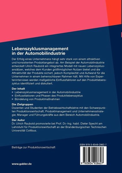 Der Erfolg eines Unternehmens hängt sehr stark von einem attraktiven und konsistenten Produktangebot ab. Am Beispiel der Automobilindustrie entwickelt Ulrich Raubold ein integriertes Modell mit neuen Lebenszyklusansätzen, welches dem Kunden größtmöglichen Nutzen bietet und die Attraktivität der Produkte sichert, jedoch Komplexität und Aufwand für die Unternehmen in einem beherrschbaren Rahmen hält. Mit Hilfe von Experteninterviews werden maßgebliche Einflussfaktoren auf den Produktlebenszyklus identifiziert und diskutiert.