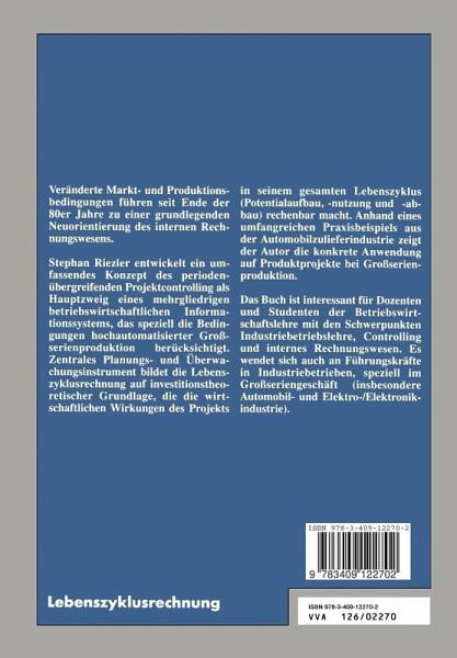 I. Einführung.- A. Allgemeine Problemstellung und Themenabgrenzung.- B. Grundlegende Charakterisierung der Lebenszyklusrechnung als Instrument des lebenszyklusorientierten Projektcontrolling.- C. Ziele und Gang der Untersuchung.- II. Grundlagen.- A. Veränderungen der Markt- und Produktionsbedingungen industrieller Großserienproduktion und deren Anforderungen an das interne Rechnungswesen.- B. Einordnung der Lebenszyklusrechnung in ein umfassendes betriebswirtschaftliches Informationssystem.- C. Charakterisierung und besondere Informationsanforderungen strategischer Projekte.- III. Begründung und Aufgaben eines lebenszyklusorientierten Projektcontrolling.- A. Grundsätzliche Ziele und Aufgaben des Controlling strategischer Projekte.- B. Grenzen traditioneller Instrumente für das projektbezogene Controlling.- C. Hauptprobleme der Umsetzung eines lebenszyklusorientierten Controlling.- D. Aufgaben eines lebenszyklusorientierten Projektcontrolling und besondere Anforderungen an dessen Ausgestaltung.- IV. Ansatzpunkte zur Realisierung eines lebenszyklusorientierten Projektcontrolling.- A. Einführung.- B. Kalkulationsansätze auf Basis wertmäßiger Kosten und Erlöse.- C. Investitionsrechnerische Ansätze auf Basis von Zahlungen.- D. Ansätze auf Basis der Einzelkosten- und Deckungsbeitragsrechnung (entscheidungsorientierter Kostenbegriff).- E. Fazit.- V. Grundgedanken der Lebenszyklusrechnung als Instrument des lebenszyklusorientierten Projektcontrolling.- A. Einführung.- B. Grundprinzipien der Lebenszyklusrechnung als Instrument des lebenszyklusorientierten Projektcontrolling.- C. Zusammenfassung und Abgrenzung zu alternativen Konzeptionen.- VI. Aufbau und Einsatz der Lebenszyklusrechnung für das lebenszyklusorientierte Projektcontrolling.- A. Einführung.- B.Fallbeispiel.- C. Lebenszyklusrechnung als Wirtschaftlichkeitsvorrechnung zu Projektbeginn.- D. Lebenszyklusrechnung als Wirtschaftlichkeitsbegleitrechnung im Projektverlauf.- E. Unterstützung durch elektronische Datenverarbeitung.- VII. Zusammenfassung der Untersuchungsergebnisse.