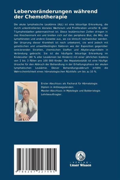 Die akute lymphatische Leukämie (ALL) ist eine bösartige Erkrankung, die durch unkontrolliertes klonales Wachstum und Proliferation unreifer B- oder T-Lymphoidzellen gekennzeichnet ist. Diese leukämischen Zellen dringen in das Knochenmark ein und breiten sich auf das periphere Blut, die Milz, die Lymphknoten und andere Gewebe aus, wo sie klinisch nachweisbar werden. Der Ursprung dieser Krankheit ist noch unbekannt, sie wird jedoch mit genetischen und umweltbedingten Faktoren wie der Exposition gegenüber ionisierenden Strahlen, chemischen Stoffen und Alkylierungsmitteln in Verbindung gebracht. Sie ist die häufigste bösartige Erkrankung im Kindesalter (80 % aller Leukämien bei Kindern) mit einer jährlichen Inzidenz von 2 bis 3 Fällen pro 100 000 Kinder. Die Hepatotoxizität ist eine häufige Ursache für den Abbruch der Behandlung in der Erhaltungsphase der akuten lymphatischen Leukämie. Dieser Behandlungsabbruch erhöht die Wahrscheinlichkeit eines hämatologischen Rückfalls um bis zu 10 %.