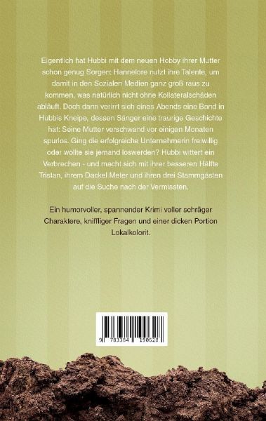 Eigentlich hat Hubbi mit dem neuen Hobby ihrer Mutter schon genug Sorgen: Hannelore nutzt ihre Talente, um damit in den Sozialen Medien ganz groß raus zu kommen, was natürlich nicht ohne Kollateralschäden abläuft. Doch dann verirrt sich eines Abends eine Band in Hubbis Kneipe, dessen Sänger eine traurige Geschichte hat: Seine Mutter verschwand vor einigen Monaten spurlos. Ging die erfolgreiche Unternehmerin freiwillig oder wollte sie jemand loswerden? Hubbi wittert ein Verbrechen - und macht sich mit ihrer besseren Hälfte Tristan, ihrem Dackel Meter und ihren drei Stammgästen auf die Suche nach der Vermissten.Ein humorvoller, spannender Krimi voller schräger Charaktere, kniffliger Fragen und einer dicken Portion Lokalkolorit.