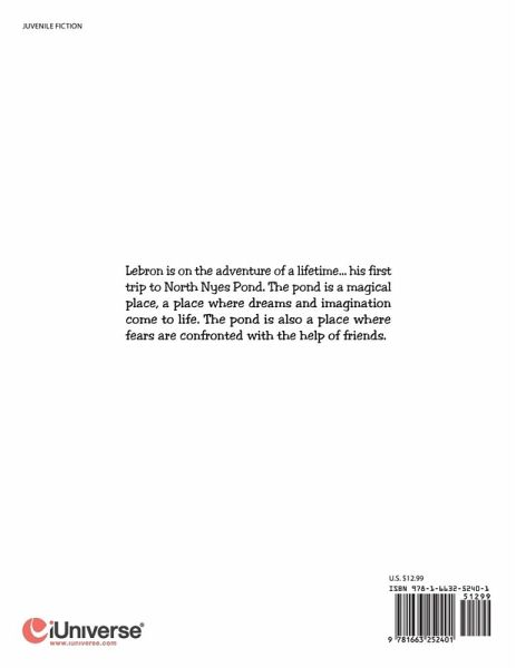 Lebron is on the adventure of a lifetime... his first trip to North Nyes Pond. The pond is a magical place, a place where dreams and imagination come to life. The pond is also a place where fears are confronted with the help of friends.
