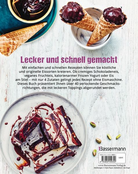 Mit einfachen und schnellen Rezepten, die ganz ohne Eismaschine auskommen, können köstliche und originelle Eissorten kreiert werden. Ob cremiges Schokoladeneis, veganes Fruchteis oder kalorienarmer Frozen Yoghurt - mit nur 4 Zutaten und ohne aufwendige Techniken gelingt jedes Rezept spielend leicht. Dieses Buch präsentiert über 40 verlockende Geschmacksrichtungen, die zum Löffeln oder vom Stiel genießen einladen. Der Kreativität sind dabei keine Grenzen gesetzt und Experimentierfreude ist ausdrücklich erwünscht.