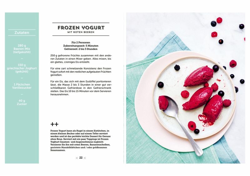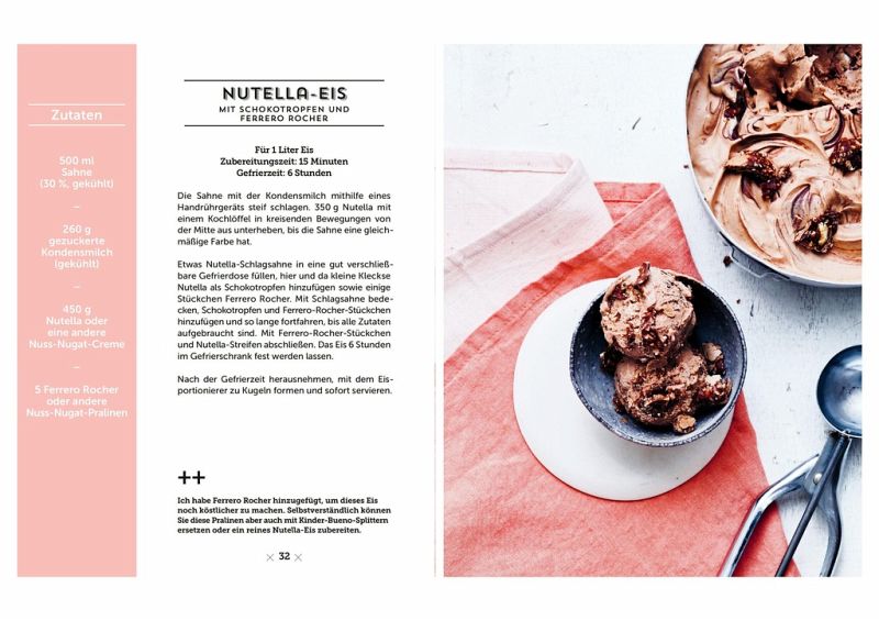 So frisch & gut geht nur selbstgemachtKöstliche Eiscreme-Kreationen ohne Eismaschine - ganz unkompliziertEiscreme mit großen Stückchen: Kekse, Schokolade oder NüsseMit laktosefreien Rezepten und 100% natürlichen Zutaten!Mit leckeren veganen OptionenUnd dazu verführerische Saucen und Toppings