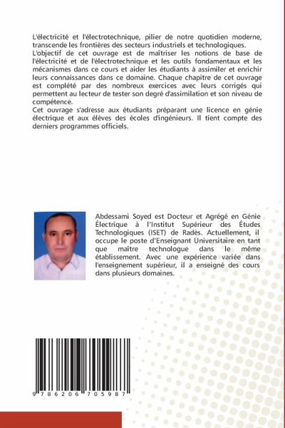 L'électricité et l'électrotechnique, pilier de notre quotidien moderne, transcende les frontières des secteurs industriels et technologiques.L'objectif de cet ouvrage est de maîtriser les notions de base de l'électricité et de l'électrotechnique et les outils fondamentaux et les mécanismes dans ce cours et aider les étudiants à assimiler et enrichir leurs connaissances dans ce domaine. Chaque chapitre de cet ouvrage est complété par des nombreux exercices avec leurs corrigés qui permettent au lecteur de tester son degré d'assimilation et son niveau de compétence.Cet ouvrage s'adresse aux étudiants préparant une licence en génie électrique et aux élèves des écoles d'ingénieurs. Il tient compte des derniers programmes officiels.