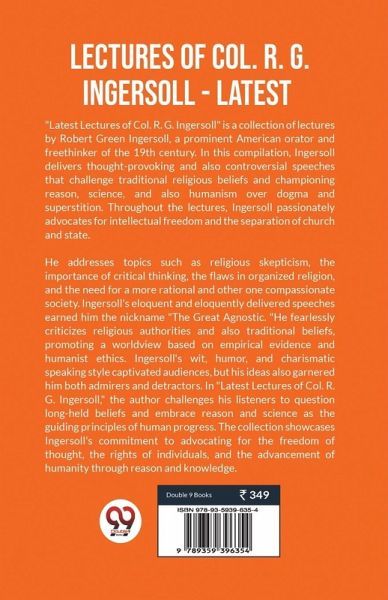 "Latest Lectures of Col. R. G. Ingersoll" is a collection of lectures by Robert Green Ingersoll, a prominent American orator and freethinker of the 19th century. In this compilation, Ingersoll delivers thought-provoking and also controversial speeches that challenge traditional religious beliefs and championing reason, science, and also humanism over dogma and superstition. Throughout the lectures, Ingersoll passionately advocates for intellectual freedom and the separation of church and state. He addresses topics such as religious skepticism, the importance of critical thinking, the flaws in organized religion, and the need for a more rational and other one compassionate society. Ingersoll's eloquent and eloquently delivered speeches earned him the nickname "The Great Agnostic. "He fearlessly criticizes religious authorities and also traditional beliefs, promoting a worldview based on empirical evidence and humanist ethics. Ingersoll's wit, humor, and charismatic speaking style captivated audiences, but his ideas also garnered him both admirers and detractors. In "Latest Lectures of Col. R. G. Ingersoll," the author challenges his listeners to question long-held beliefs and embrace reason and science as the guiding principles of human progress. The collection showcases Ingersoll's commitment to advocating for the freedom of thought, the rights of individuals, and the advancement of humanity through reason and knowledge.