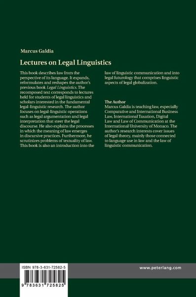 This book describes law from the perspective of its language. It expands, reformulates and reshapes the author's previous book «Legal Linguistics». The recomposed text corresponds to lectures held for students of legal linguistics and scholars interested in the fundamental legal-linguistic research. The author focuses on legal-linguistic operations such as legal argumentation and legal interpretation that steer the legal discourse. He also explains the processes in which the meaning of law emerges in discursive practices. Furthermore, he scrutinizes problems of textuality of law. This book is also an introduction into the law of linguistic communication and into legal futurology that comprises linguistic aspects of legal globalization.