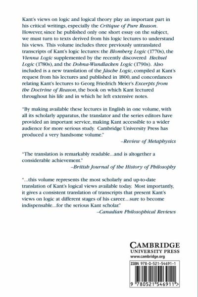 This volume includes three previously untranslated transcripts of Kant's logic lectures.