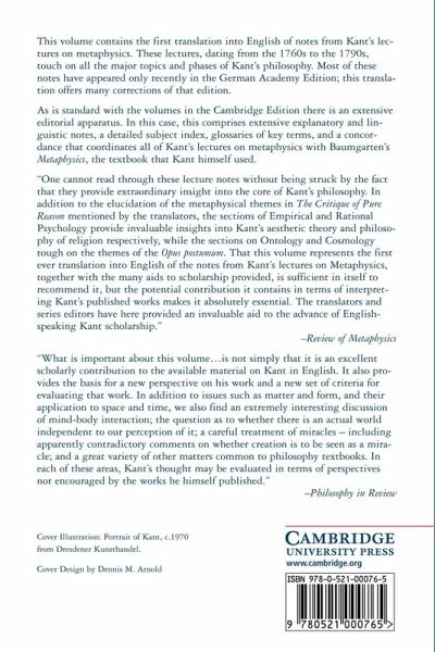 This volume contains the first translation into English of notes from Kant's lectures on metaphysics.