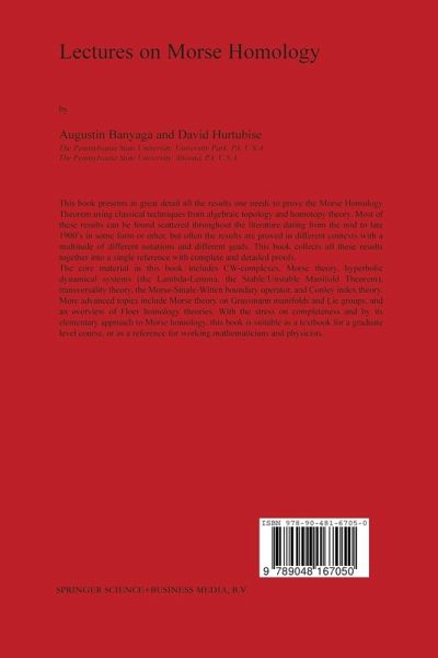 "This book provides a treatment of finite-dimensional Morse theory and its associated chain complex, pitched at a level appropriate to early-stage graduate students. ... Throughout, the authors take pains to make the material accessible, and ... extensive references are provided. ... Many well-drawn figures are provided to clarify the text, and there are over 200 exercises, with hints for some of them in the back. ... Banyaga and Hurtubise's book provides a valuable service by introducing young mathematicians to a circle of ideas ... ."