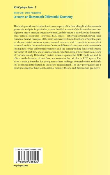 "The lecture notes in this book are a gentle introduction to the topic, intended for readers with no prior exposure to non-smooth analysis, and hint towards the most recent developments of the theory. ... This book is written in a clear and accessible way. It is definitely a recommended introduction to a quickly developing subject." (Daniele Semola, Mathematical Reviews, February, 2023)