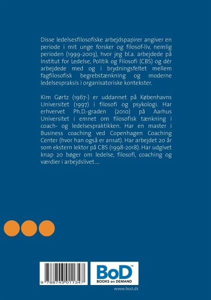 Disse ledelsesfilosofiske arbejdspapirer angiver en periode i mit unge forsker og filosof-liv, nemlig perioden (1999-2003), hvor jeg bl.a. arbejdede på Institut for Ledelse, Politik og Filosofi (CBS) og dér arbejdede med og i brydningsfeltet mellem fagfilosofisk begrebstænkning og moderne ledelsespraksis i organisatoriske kontekster.