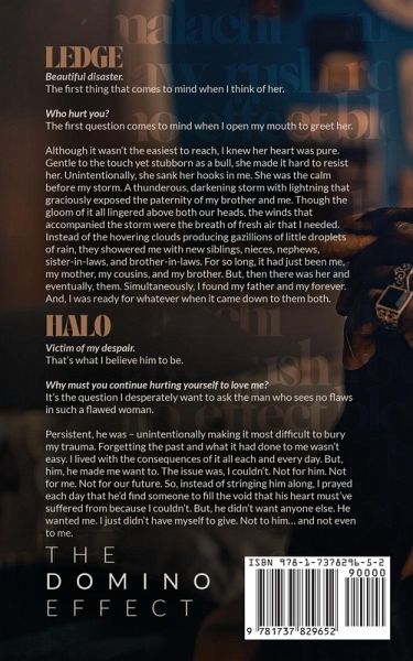 Beautiful disaster. The first thing that comes to mind when I think of her. Who hurt you? The first question comes to mind when I open my mouth to greet her. Although it wasn't the easiest to reach, I knew her heart was pure. Gentle to the touch yet stubborn as a bull, she made it hard to resist her. Unintentionally, she sank her hooks in me. She was the calm before my storm. A thunderous, darkening storm with lightning that graciously exposed the paternity of my brother and me. Though the gloom of it all lingered above both our heads, the winds that accompanied the storm were the breath of fresh air that I needed. Instead of the hovering clouds producing gazillions of little droplets of rain, they showered me with new siblings, nieces, nephews, sister-in-laws, and brother-in-laws. For so long, it had just been me, my mother, my cousins, and my brother. But, then there was her and eventually, them. Simultaneously, I found my father and my forever. And, I was ready for whatever when it came down to them both. Victim of my despair. That's what I believe him to be. Why must you continue hurting yourself to love me? It's the question I desperately want to ask the man who sees no flaws in such a flawed woman. Persistent, he was - unintentionally making it most difficult to bury my trauma. Forgetting the past and what it had done to me wasn't easy. I lived with the consequences of it all each and every day. But, him, he made me want to. The issue was, I couldn't. Not for him. Not for me. Not for our future. So, instead of stringing him along, I prayed each day that he'd find someone to fill the void that his heart must've suffered from because I couldn't. But, he didn't want anyone else. He wanted me. I just didn't have myself to give. Not to him... and not even to me.